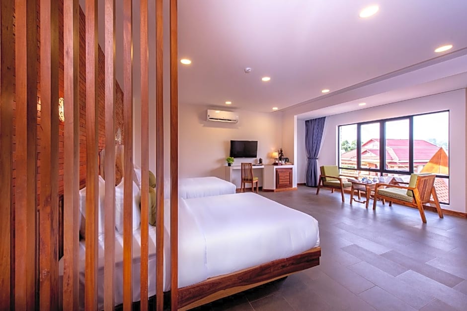 Guests will have a special experience as this family room provides a pool with a view. Offering free toiletries and bathrobes, this family room includes a private bathroom with a walk-in shower, a bath and a hairdryer. The spacious air-conditioned family room offers a flat-screen TV with streaming services, soundproof walls, a mini-bar, a tea and coffee maker as well as garden views. The unit offers 3 beds.